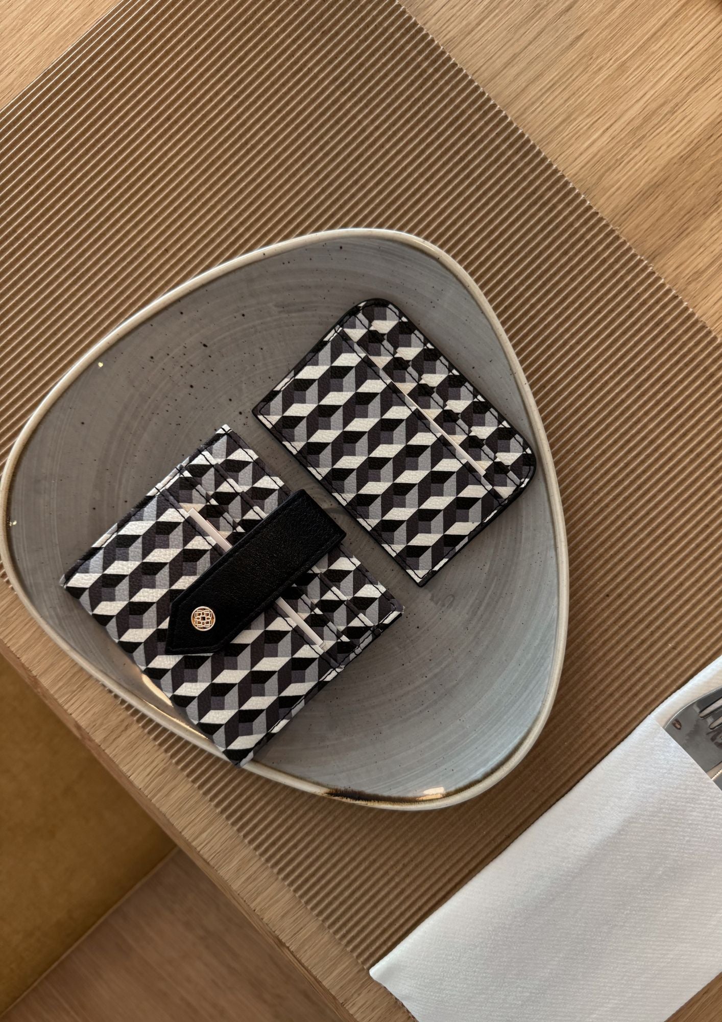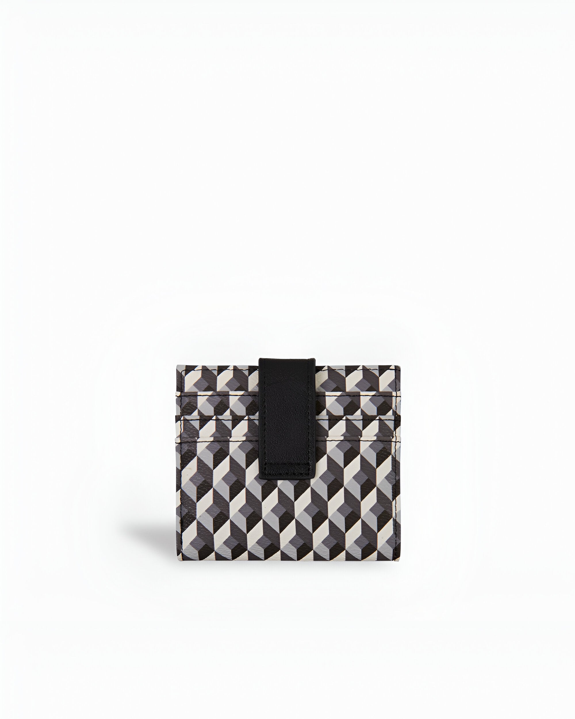 The new medium wallet with print from Lonbali features a square design with snap tab closure, holds six cards inside and six cards on the outside. It also contains an additional pocket for bills. It features the brand's logo engraved on the front closure.