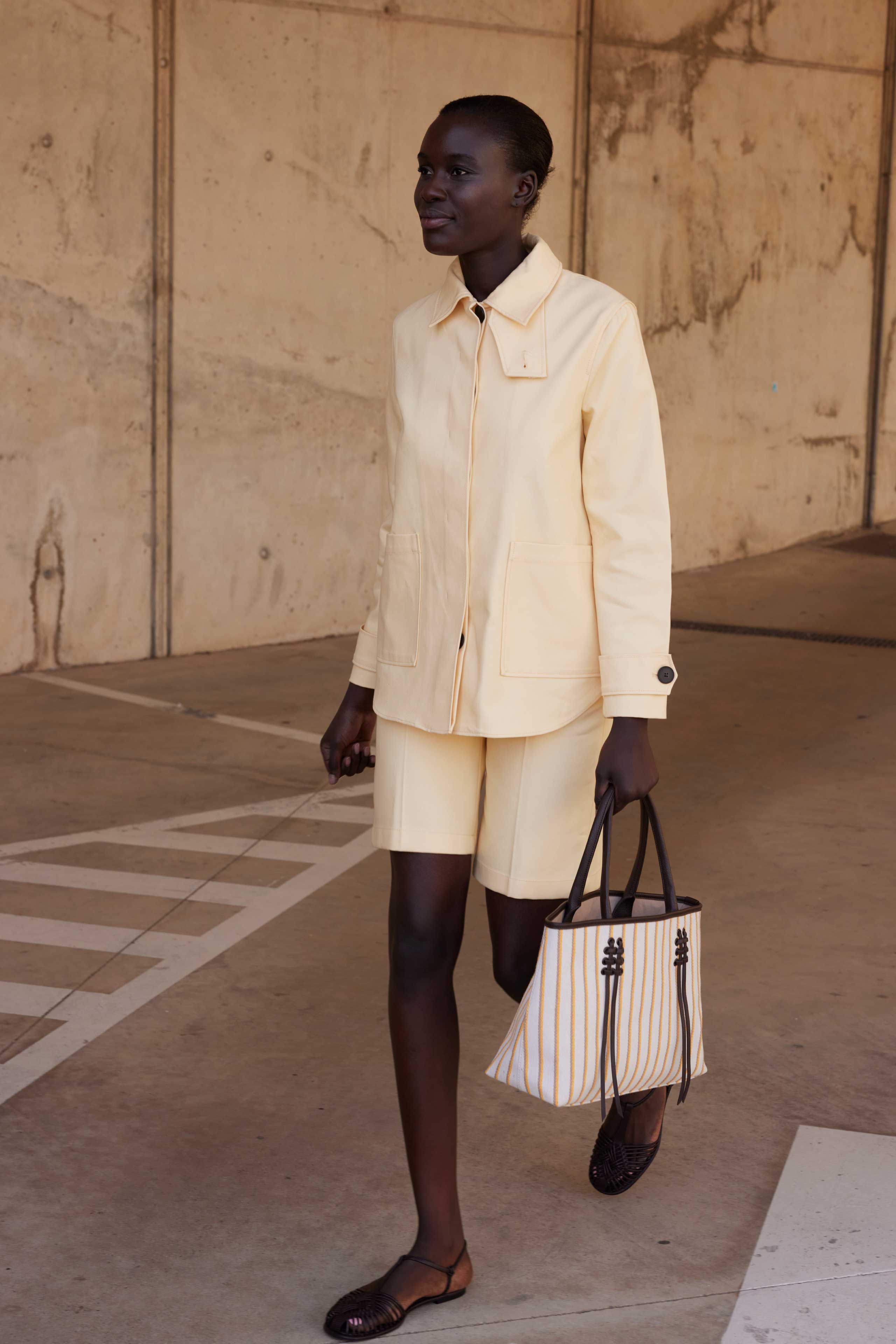 The new women's handbag Benat Basket is the perfect choice for those looking for a stylish summer item. This spacious bag comes in a classic earthy color palette with brown accents and vertical stripes, perfect for those who value elegance and space without sacrificing style.