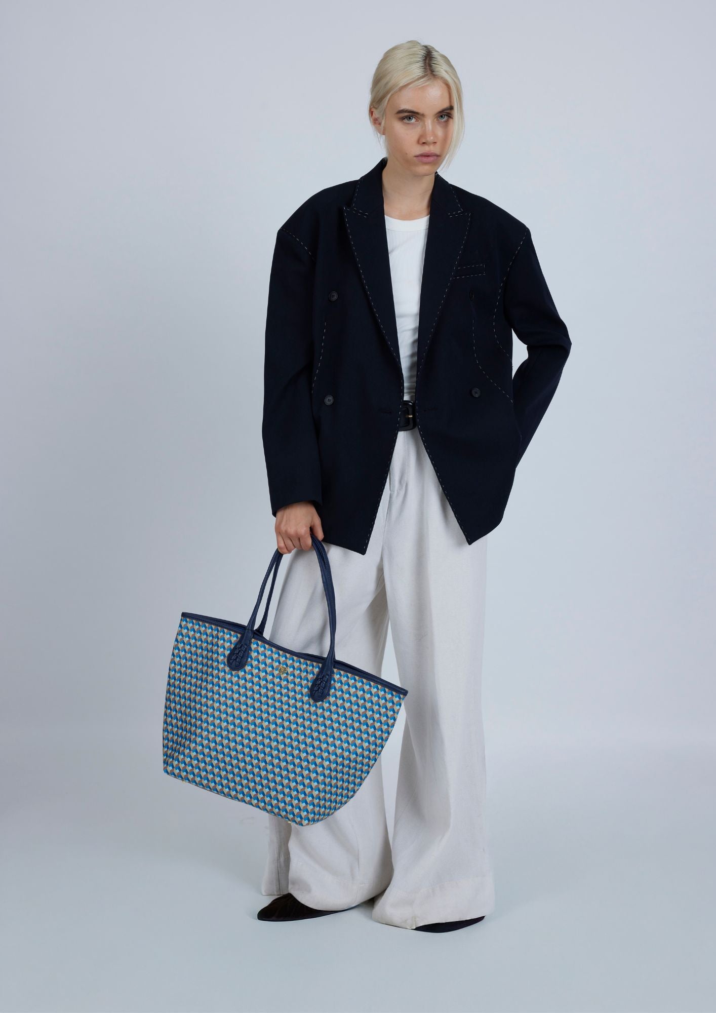 The shopping printed bag from the Borndistinguished by being the most iconic bag of the line. Lonbali. It has a timeless design and is versatile, it is characterized by its large capacity. You can carry it on your shoulder or cross-body thanks to its shoulder strap.