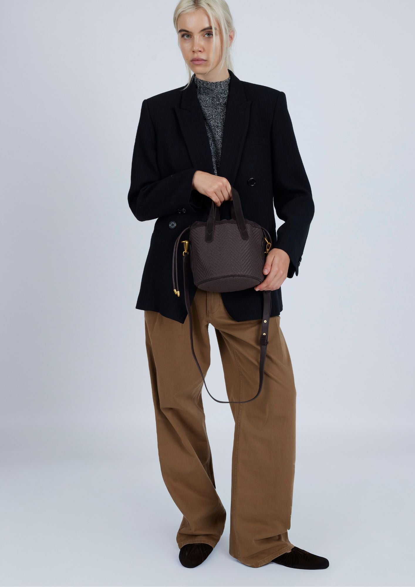 The Mini Bucket bag by Lonbali is designed to accompany you with elegance in your daily activities. Compact, structured and with clean lines, made with herringbone texture, providing a sophisticated and resistant finish.