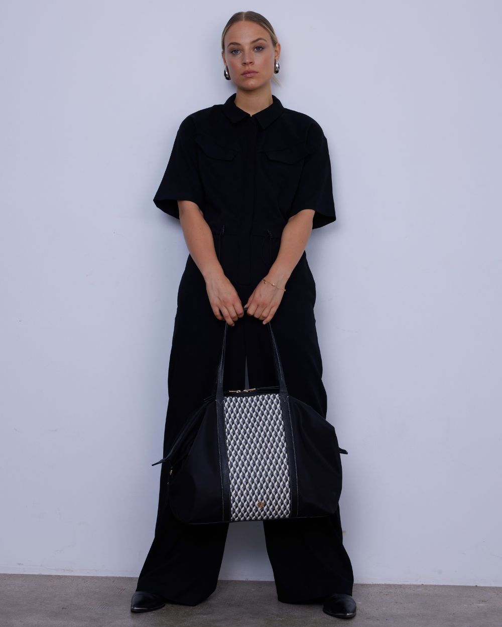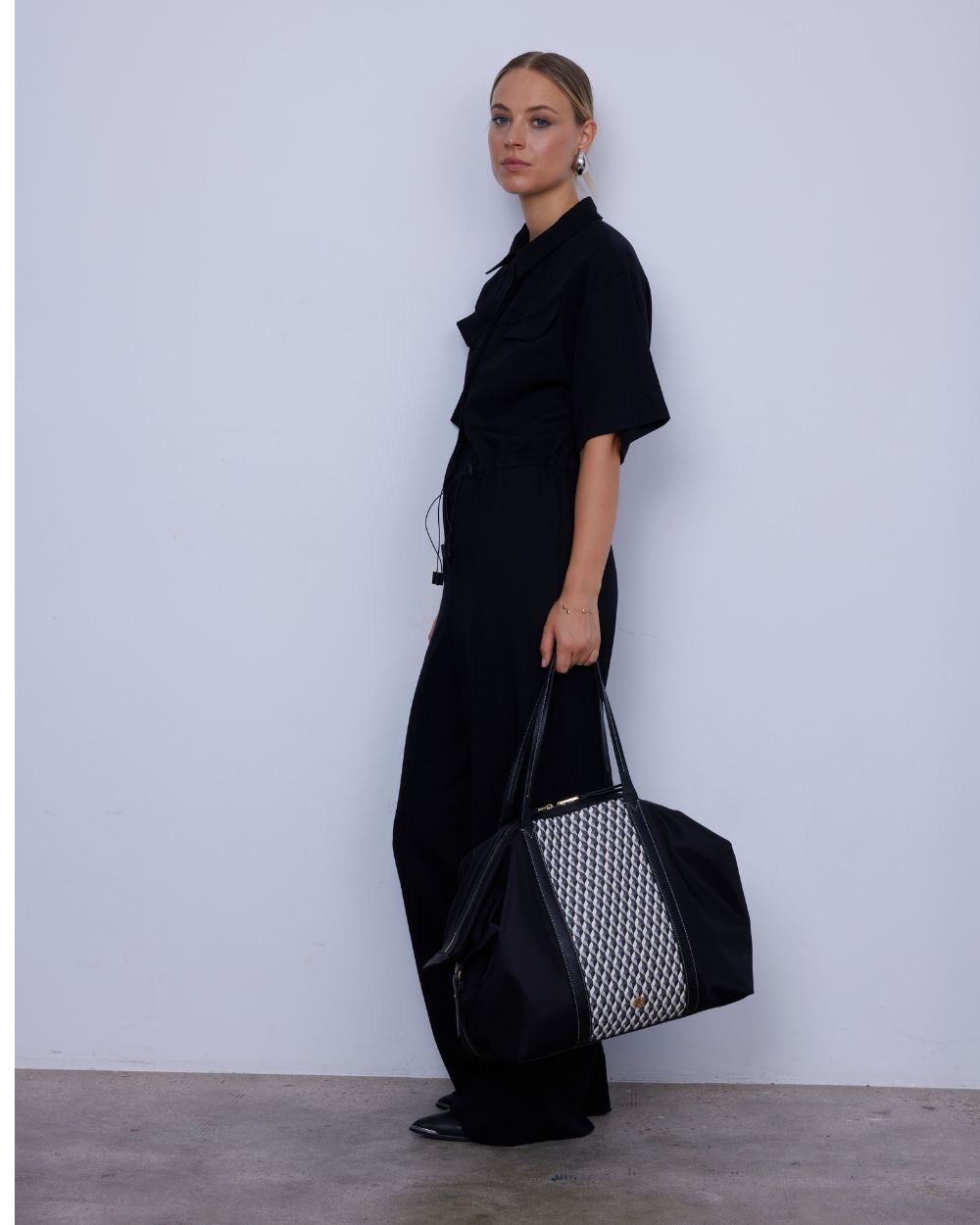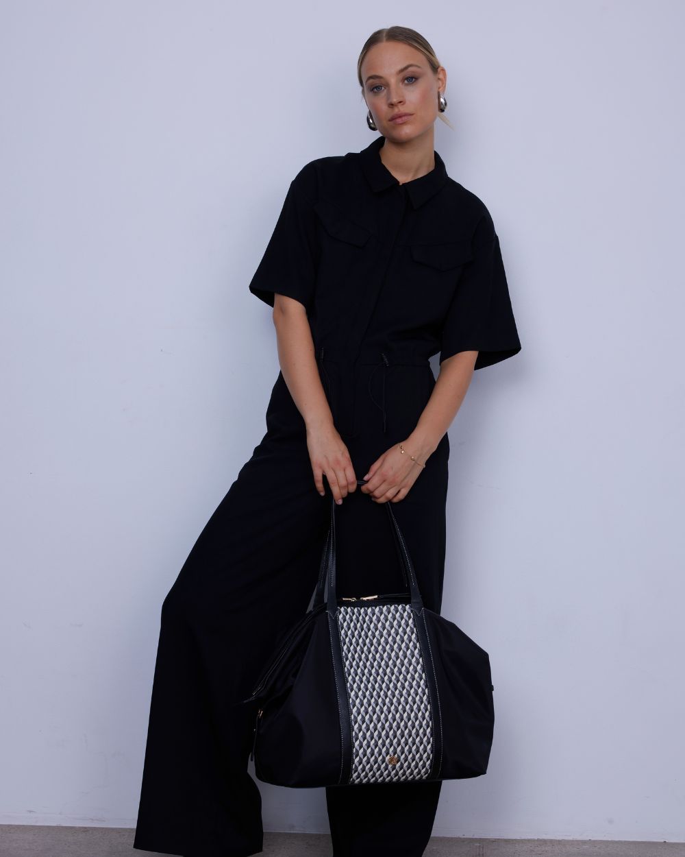 The Shopper Bag XL Lite Born B&W from the Lite collection of Lonbali, the Spanish handbag brand, is characterized by its large size, lightness and exclusive design, highlighting the iconic central stripe with the print, which gives it a unique and elegant touch. Bornprint, which gives it a unique and elegant touch. With a timeless and versatile style, it is perfect for long getaways and trips, thanks to its ample storage space. You can carry it over the shoulder or cross-body with its adjustable shoulder strap, ideal for carrying it comfortably.