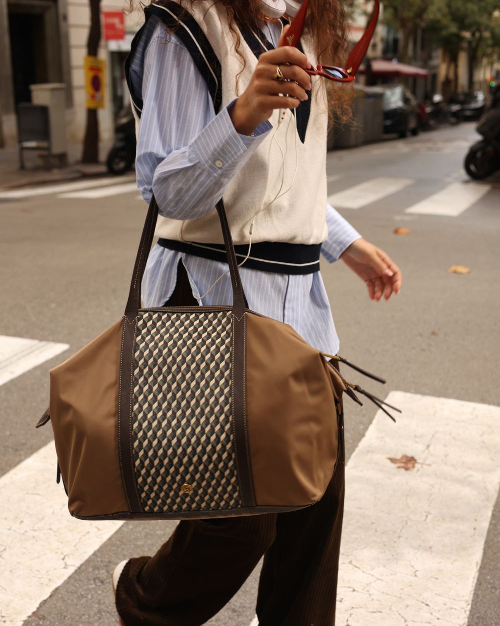 The Shopper Bag XL Lite Born Souris from the Lite collection of Lonbali, your Spanish handbags brand, is characterized by its large size, lightness and exclusive design, highlighting the iconic central stripe with the print, which gives it a unique and elegant touch. Bornprint, which gives it a unique and elegant touch. With a timeless and versatile style, it is perfect for long getaways and trips, thanks to its ample storage space. You can carry it over the shoulder or cross-body with its adjustable shoulder strap, ideal for carrying it comfortably.