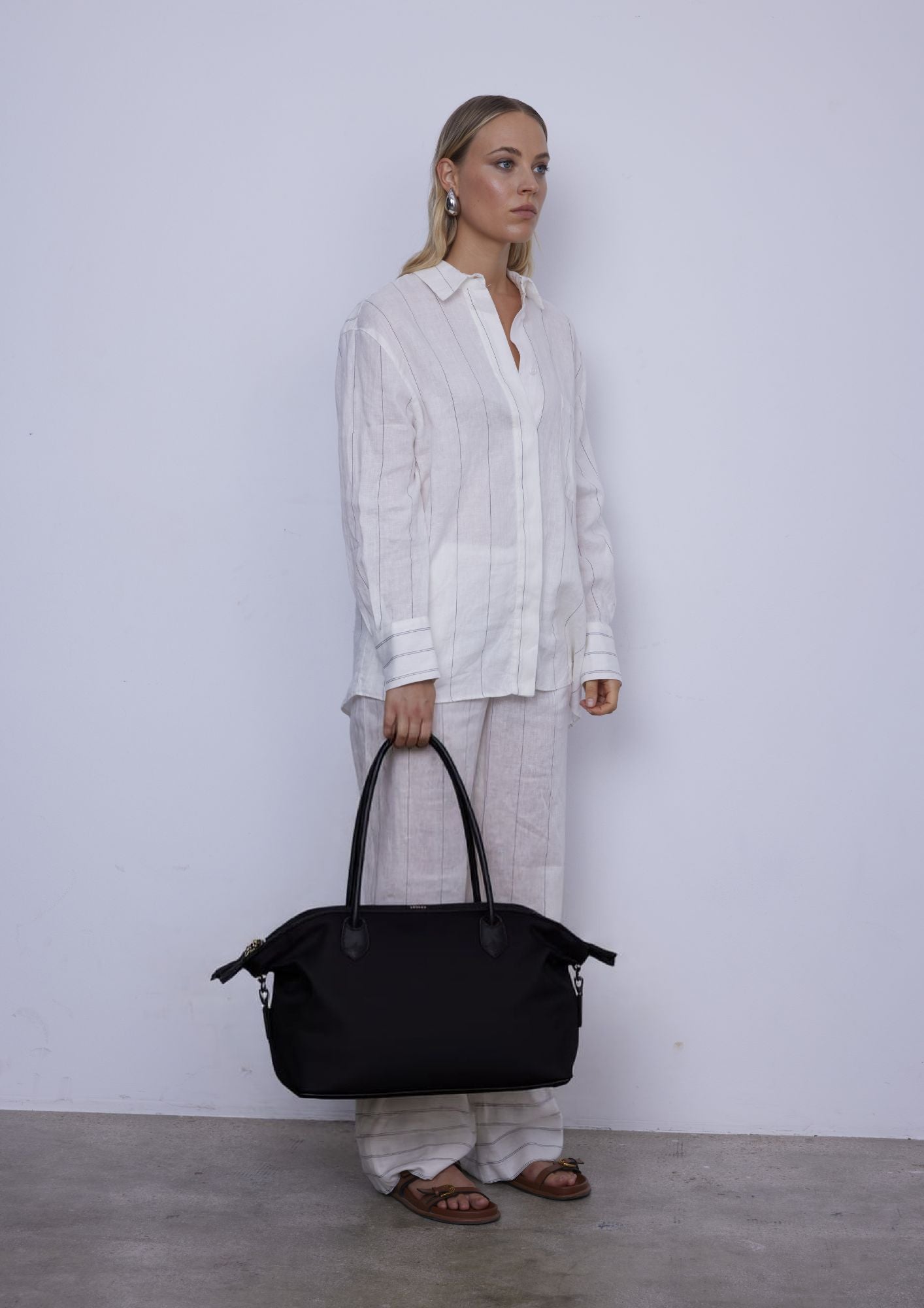 The new Weekender Bag from Lonbali, the Spanish bag brand, is the perfect companion for your getaways. Lightweight, durable and always ready to travel. Its expandable design gives you flexibility, while the nylon and leather finishes ensure style and durability. This shoulder bag features a full-zip closure and a handy exterior pocket to keep your belongings safe and organized.