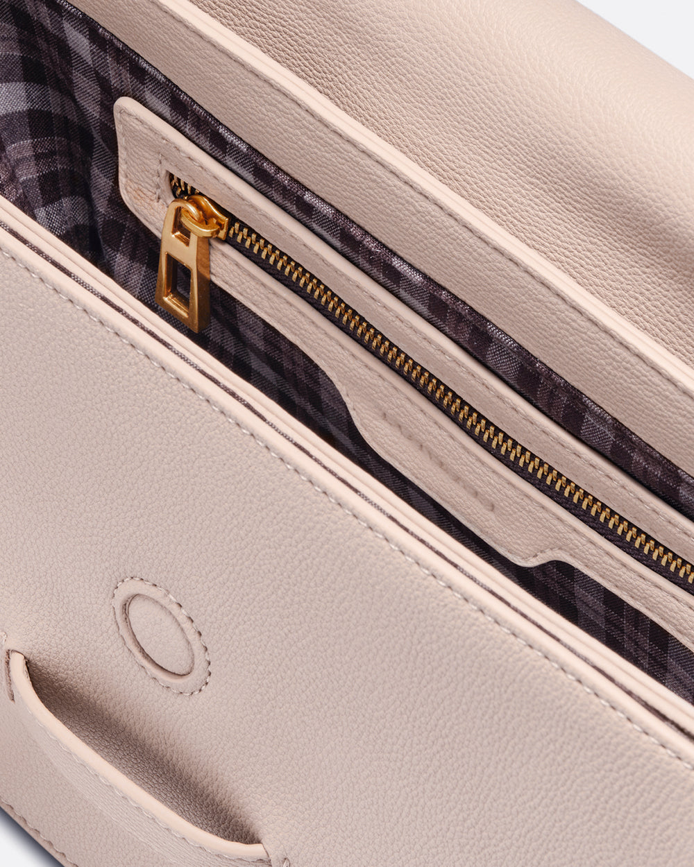 A sophisticated shoulder bag with a semi-circular silhouette, designed to add an elegant and feminine touch to any look. The Gante Beige stands out for its enveloping shape and beige finish, a classic and versatile color that never goes out of style.