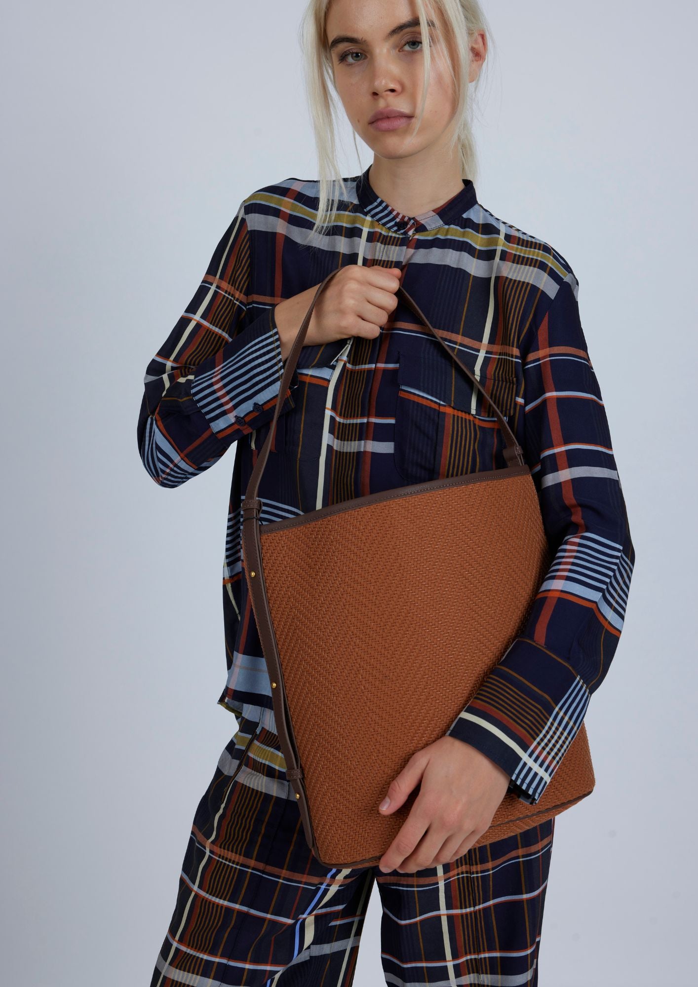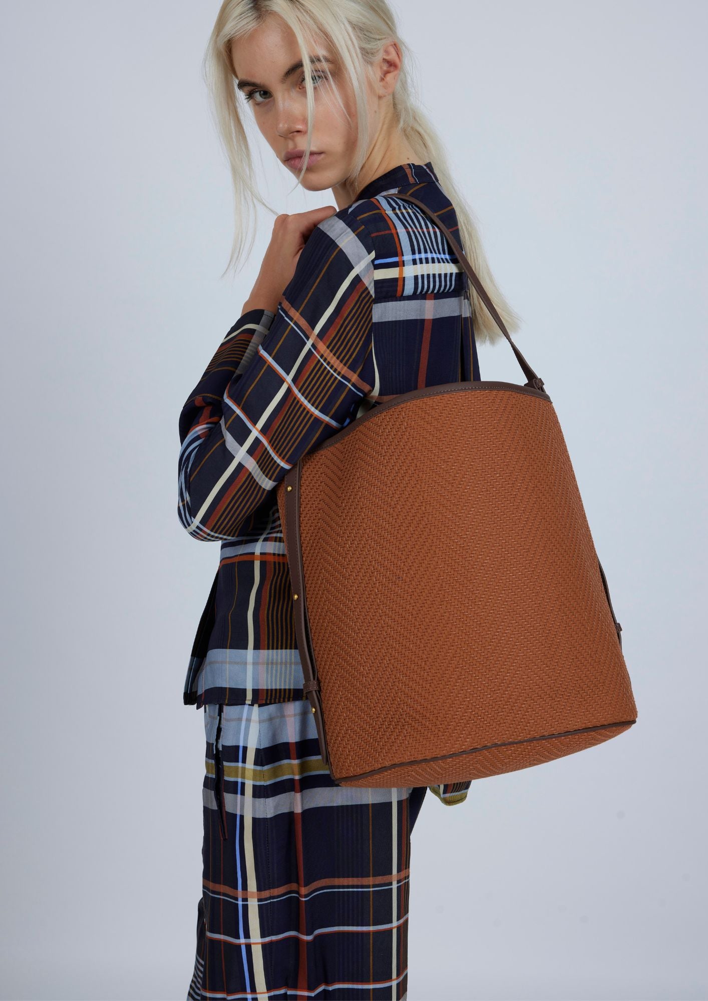 This Bucket bag by Lonbali is ideal for everyday use. It has a modern design with braided texture in terracotta tones that goes with everything. Spacious inside, perfect for carrying your daily essentials. Its sturdy adjustable handle makes it comfortable to carry on your shoulder or in your hand, and its structure keeps its shape without being rigid.