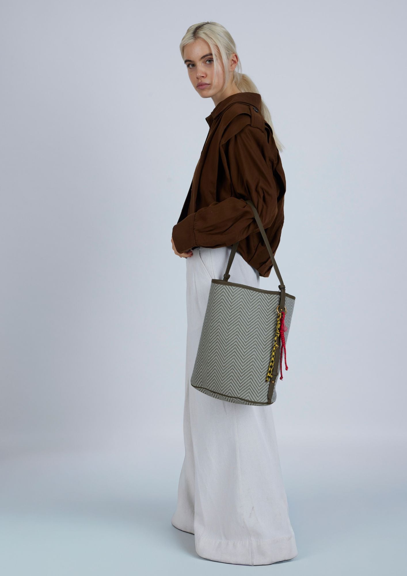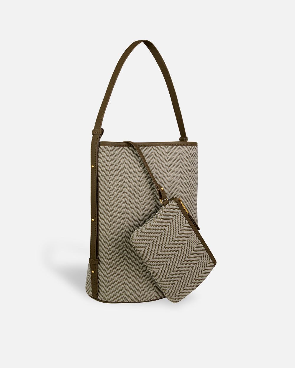 This Bucket bag by Lonbali is ideal for everyday use. It has a modern design with braided texture in green tones that goes with everything. Spacious inside, perfect for carrying your daily essentials. Its sturdy adjustable handle makes it comfortable to carry on your shoulder or in your hand, and its structure keeps its shape without being rigid.