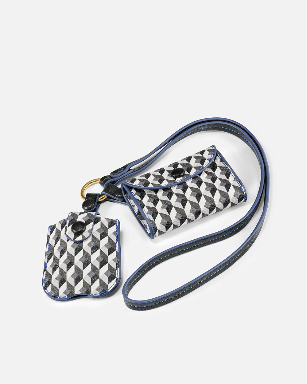 TheMini Duo Case is a set of two compact cases featuring the iconic Born geometric print Born black and white. It includes aheadphone case with a snap closure and loop for easy hanging, and a mini horizontal case perfect for storing coins, keys, or small accessories.