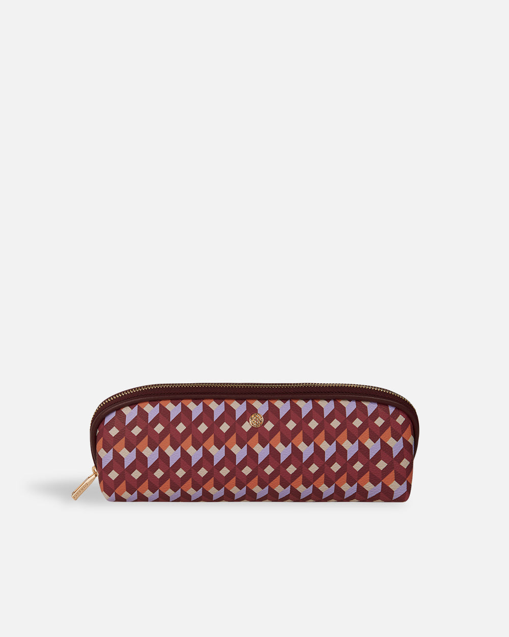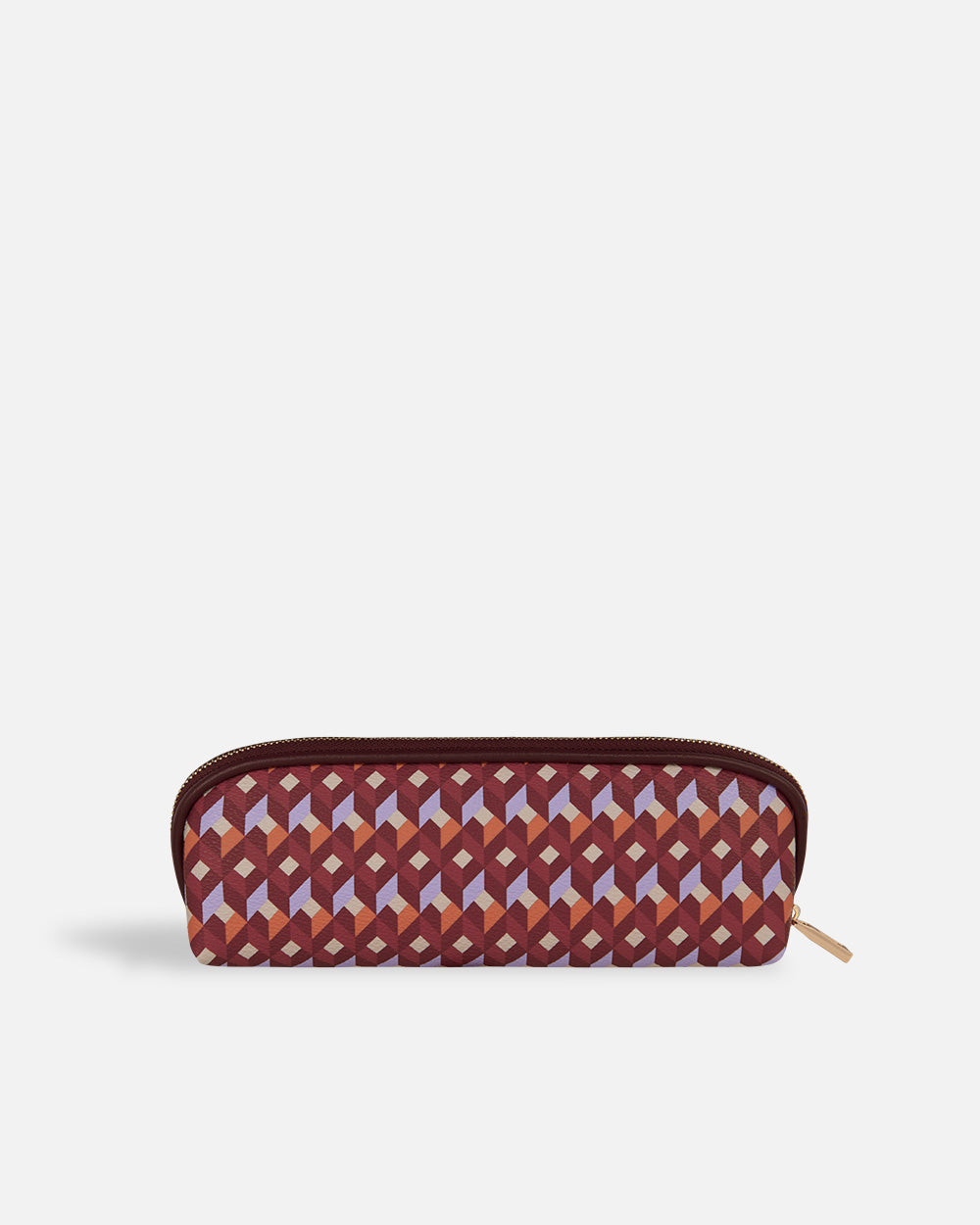 With a geometric design in shades of burgundy and lavender, the new case from Lonbali combines elegance and practicality. Ideal for organizing personal items or stationery, it has a golden metal clasp and a high quality finish.