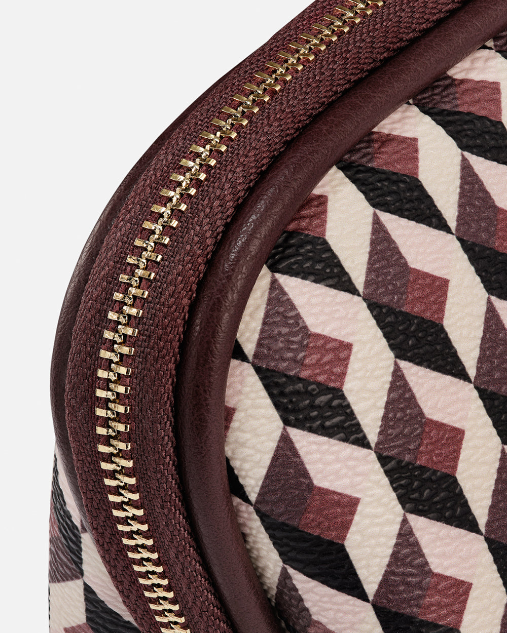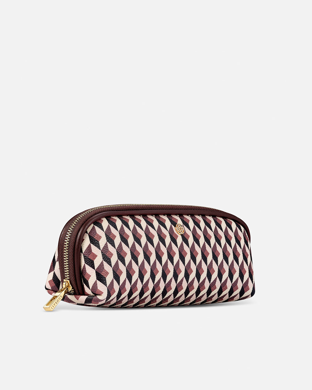 With a geometric design in maroon and pink tones, the new case from Lonbali case combines elegance and practicality. Ideal for organizing personal items or stationery, it features a gold metal clasp and high-quality finish.